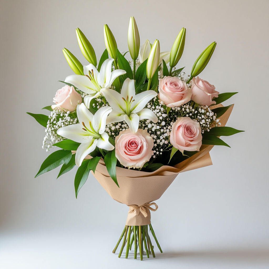 После добавления букета в корзину вы перейдете к оформлению заказа, где сможете приложить конфеты, воздушные шарики, торт, мишку, фрукты и не только.